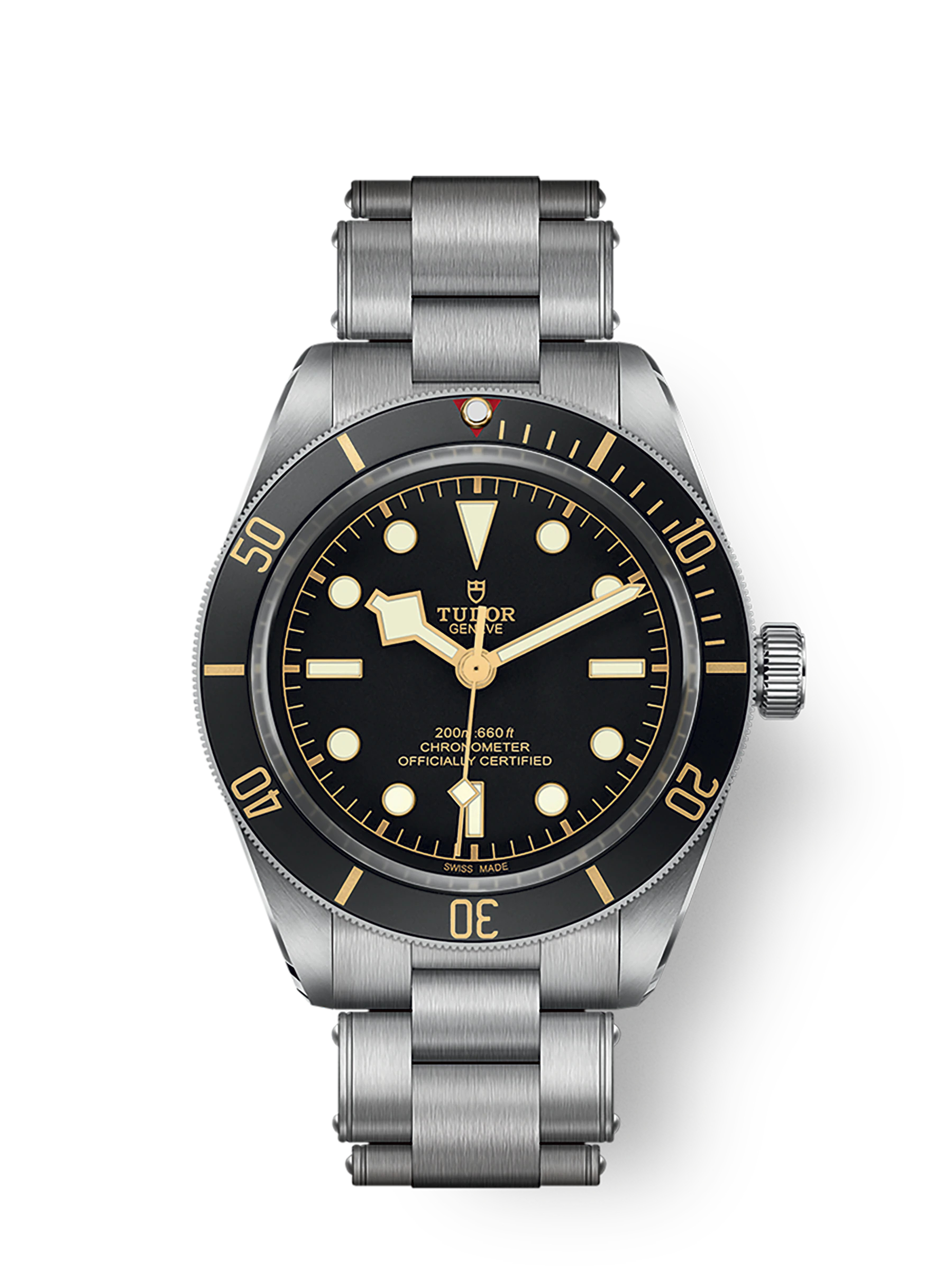 Il Black Bay rende omaggio a 60 anni di tradizione nella produzione di orologi subacquei. Le linee d’insieme e il quadrante e il vetro bombati di questo modello iconico sono un riferimento ai primissimi orologi subacquei Tudor. Le lancette dalla caratteristica forma spigolosa, note come “snowflake”, si ispirano agli orologi consegnati in grandi quantità alla Marina francese negli anni ’70.