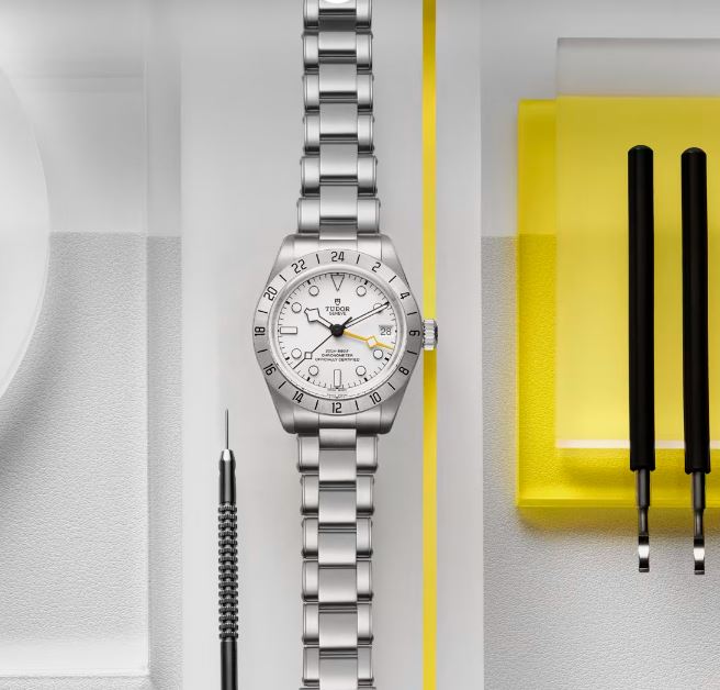 Il Black Bay Pro è un orologio robusto, con una lunetta fissa satinata graduata 24 ore e una lancetta “Snowflake” 24 ore di colore giallo, animato dal Calibro di Manifattura TUDOR MT5652 con funzione GMT integrata. Oggi, questo orologio si spinge ancora oltre in termini di design con un quadrante opalino che assicura un’ottima leggibilità. Gli indici in ceramica e le lancette presentano contorni neri che creano un audace contrasto, conferendo ulteriore carattere al modello e rendendolo adatto a spedizioni esplorative di qualunque tipo, da quelle polari a quelle sotterranee.